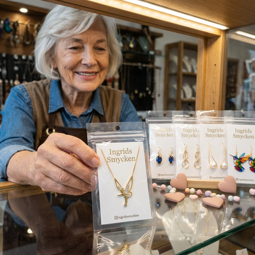 Jag är Ingrid, och efter många år av att handtillverka smycken med omtanke, tålamod och mening …